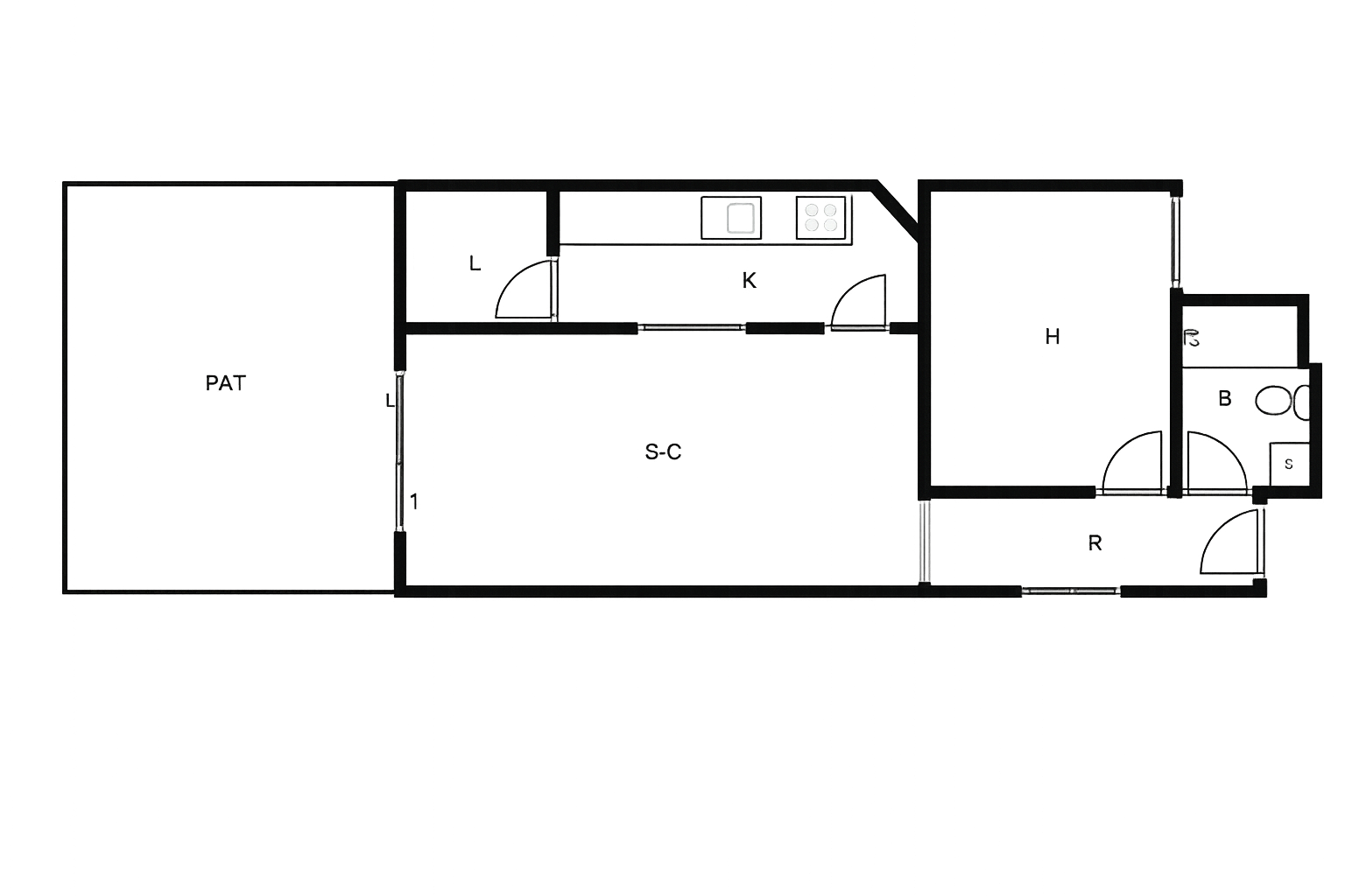 The apartment is distributed into a living–dining room, an American-style kitchen furnished with upper and lower cabinets and equipped with a ceramic hob, oven, and extractor hood, one bedroom, and one bathroom. The property includes a private garage space of 10 m² with easy access and good manoeuvrability.